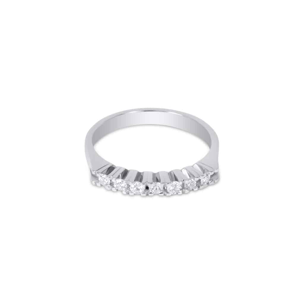 A continuous line of stones around the finger creates a different expression of commitment. Instead of one tall centre, many small diamonds share the space and light. This option suits people who want a low-profile ring that slips easily under gloves and against other bands. It also works well for those who like the idea of a “full circle” symbol that reads clearly without a raised setting. In Cyprus, many jewellers now offer eternity rings as both engagement pieces and wedding bands, depending on client preference.