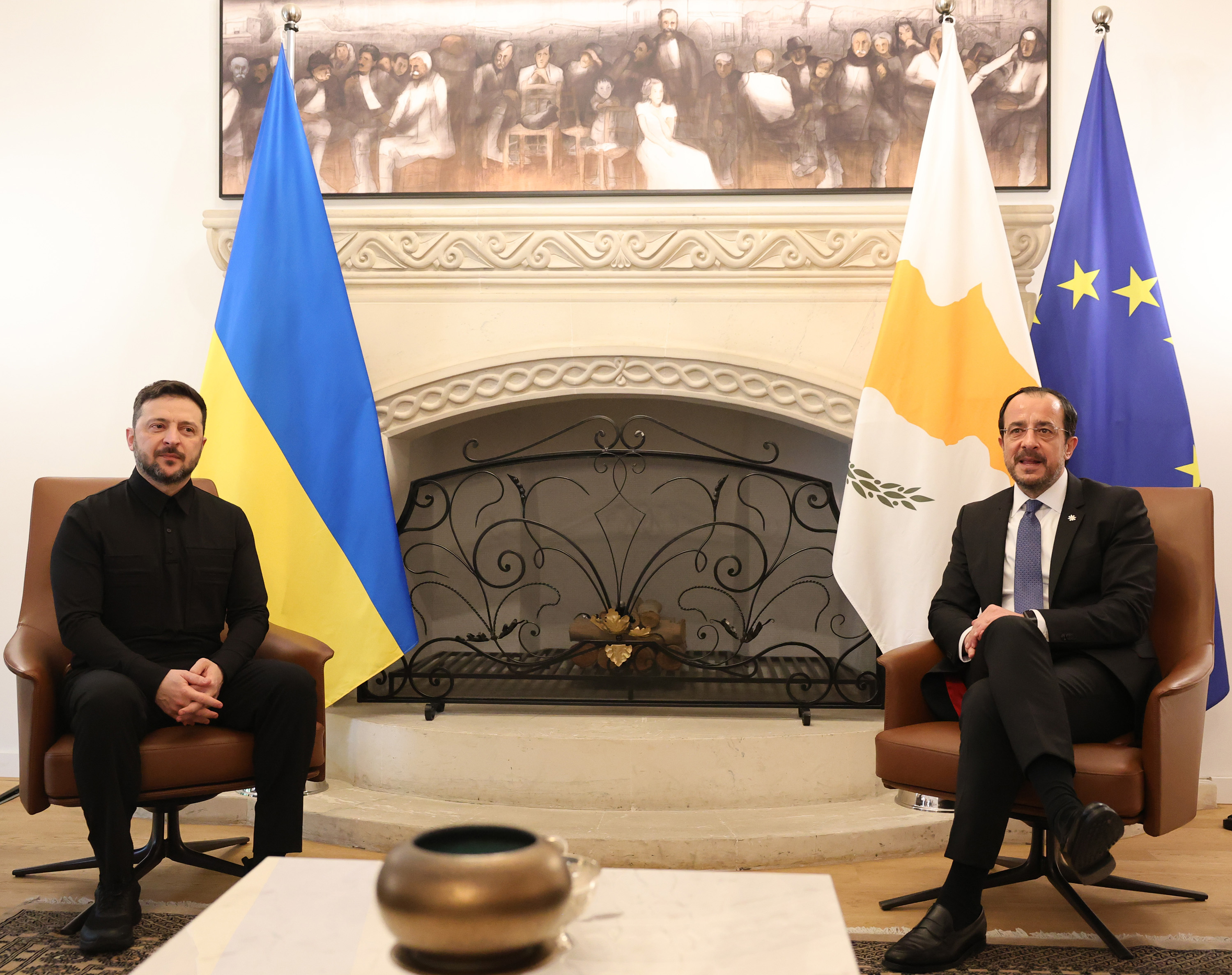Later on Wednesday, only a few hours before the Cyprus officially assumed the EU presidency, Christodoulides hosted a meeting at the presidential palace with the participation of the presidents of the European Commission and the EU council, Ursula von der Leyen and Antonio Costa, together with Ukrainian President Volodymyr Zelenskiy.