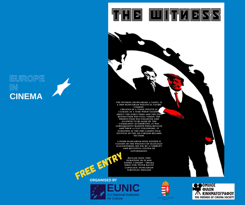 The opening ceremony of the series will take place at the Pantheon Theatre in Nicosia on January 29th at 8pm, followed by a wine reception. The 2026 programme opens with the Hungarian film A Tanú / The Witness (1969), directed by Péter Bacsó, presented by the Embassy of Hungary in Cyprus.