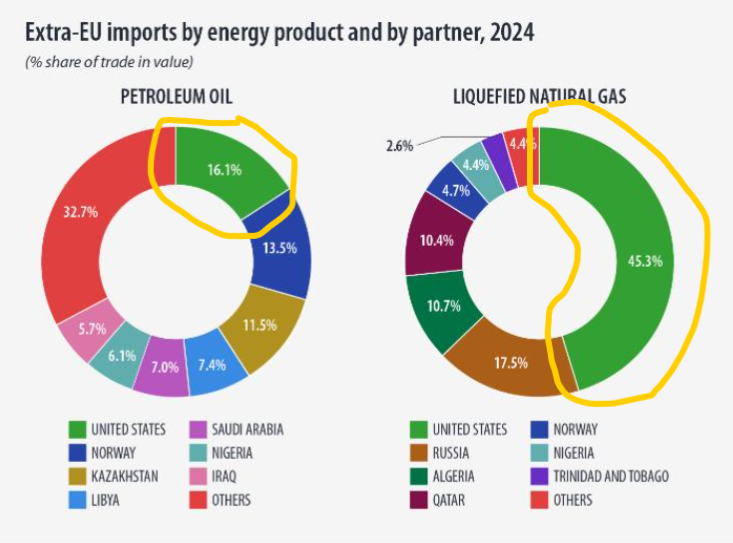 Under the now frozen trade deal with the US -agreed last July- the EU is committed to increase these imports even more. The deal states: “The US and the EU commit to cooperate on ensuring secure, reliable, and diversified energy supplies, including by addressing non-tariff barriers that might restrict bilateral energy trade. As part of this effort, the EU intends to procure US LNG, oil, and nuclear energy products with an expected offtake value at $750 billion through 2028.”