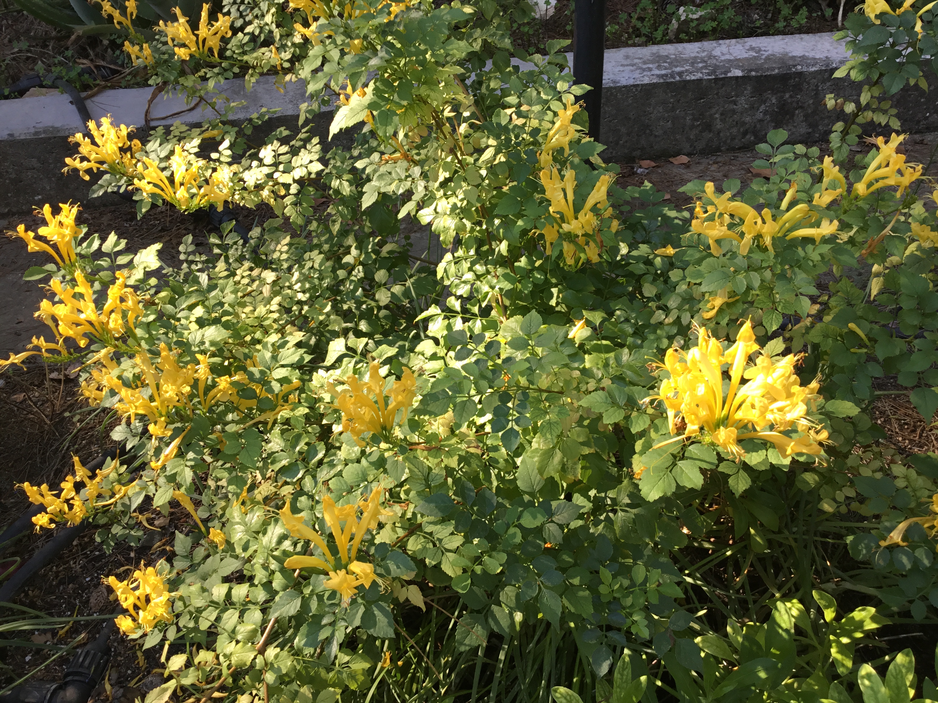 Tecoma also attracts butterflies and bees at a time when the flowers that they like are not in bloom, a shortage caused by our sometimes cold wintry weather.