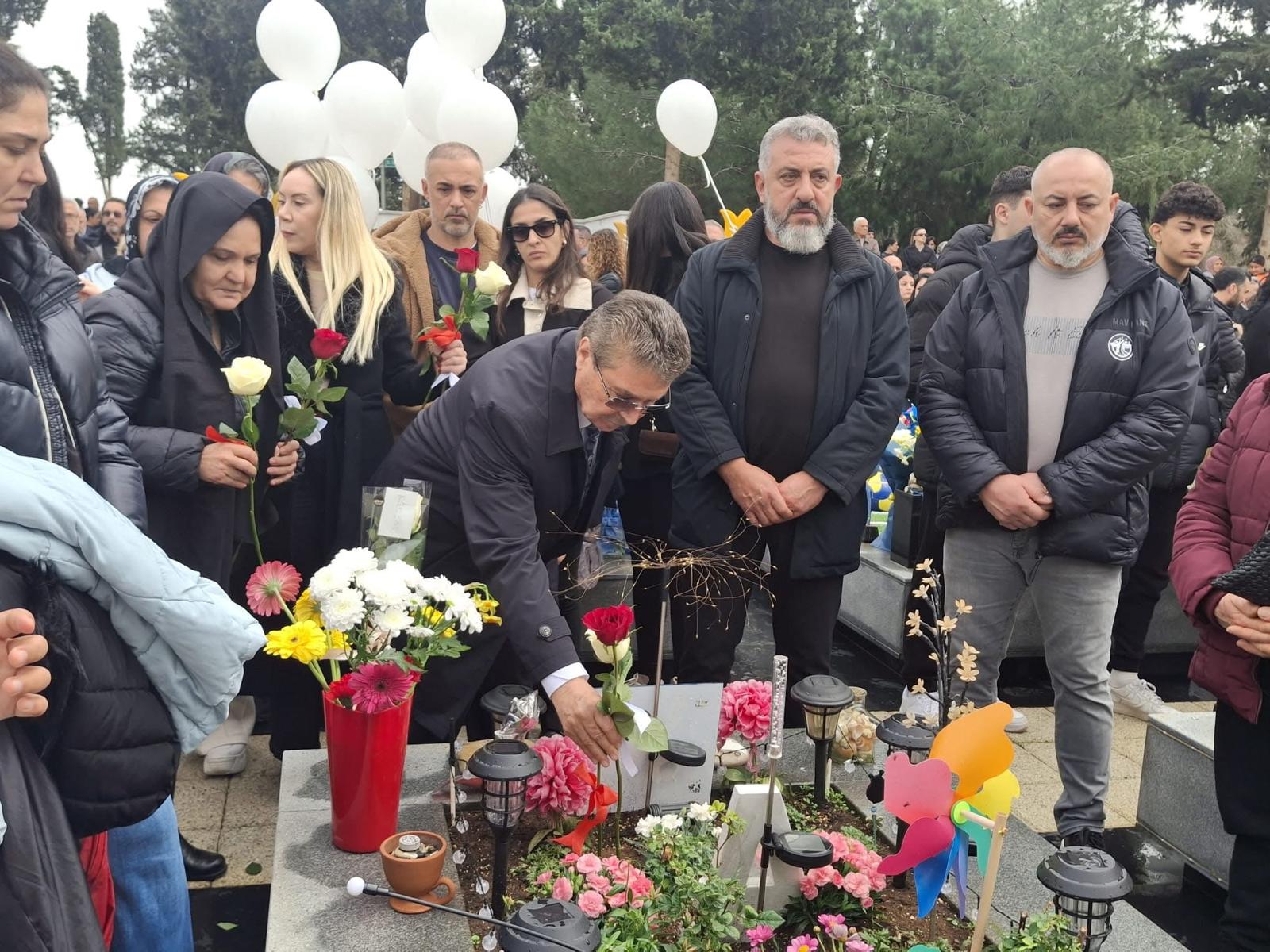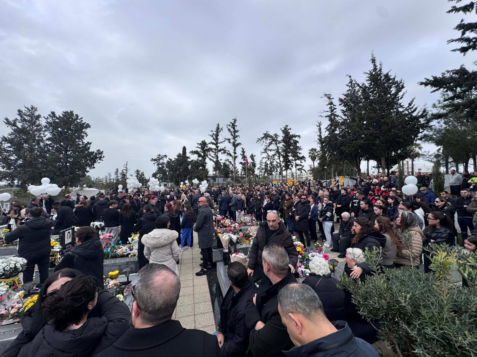Mourners, led by Rusen Karakaya, whose daughter Selin was among the 24 Cypriot children killed at the Isias hotel, released white balloons into the skies above the cemetery.