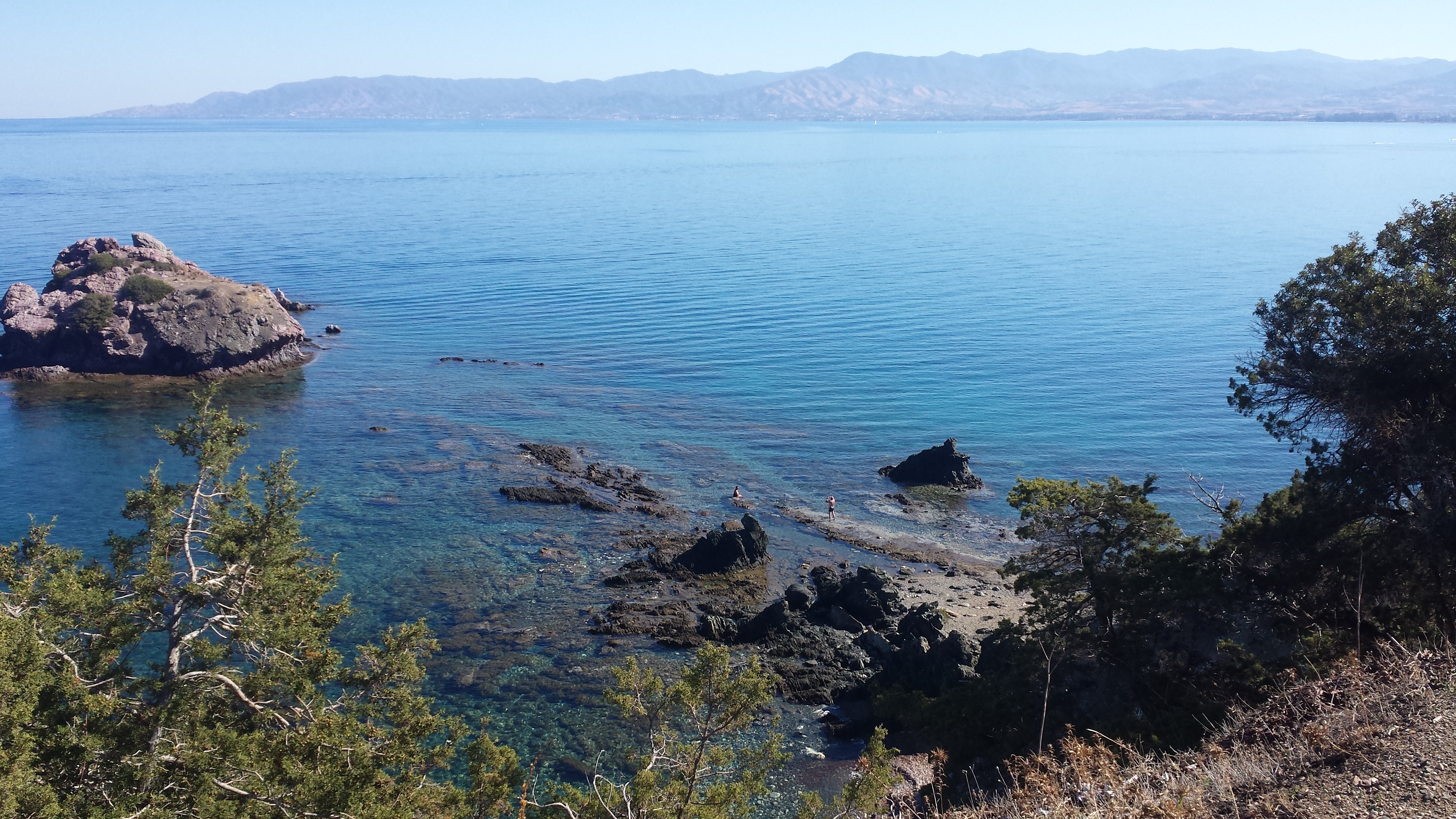 The main route begins near Pissouri Bay and winds along the coast before climbing across the cliff tops and descending to a secluded bay below.