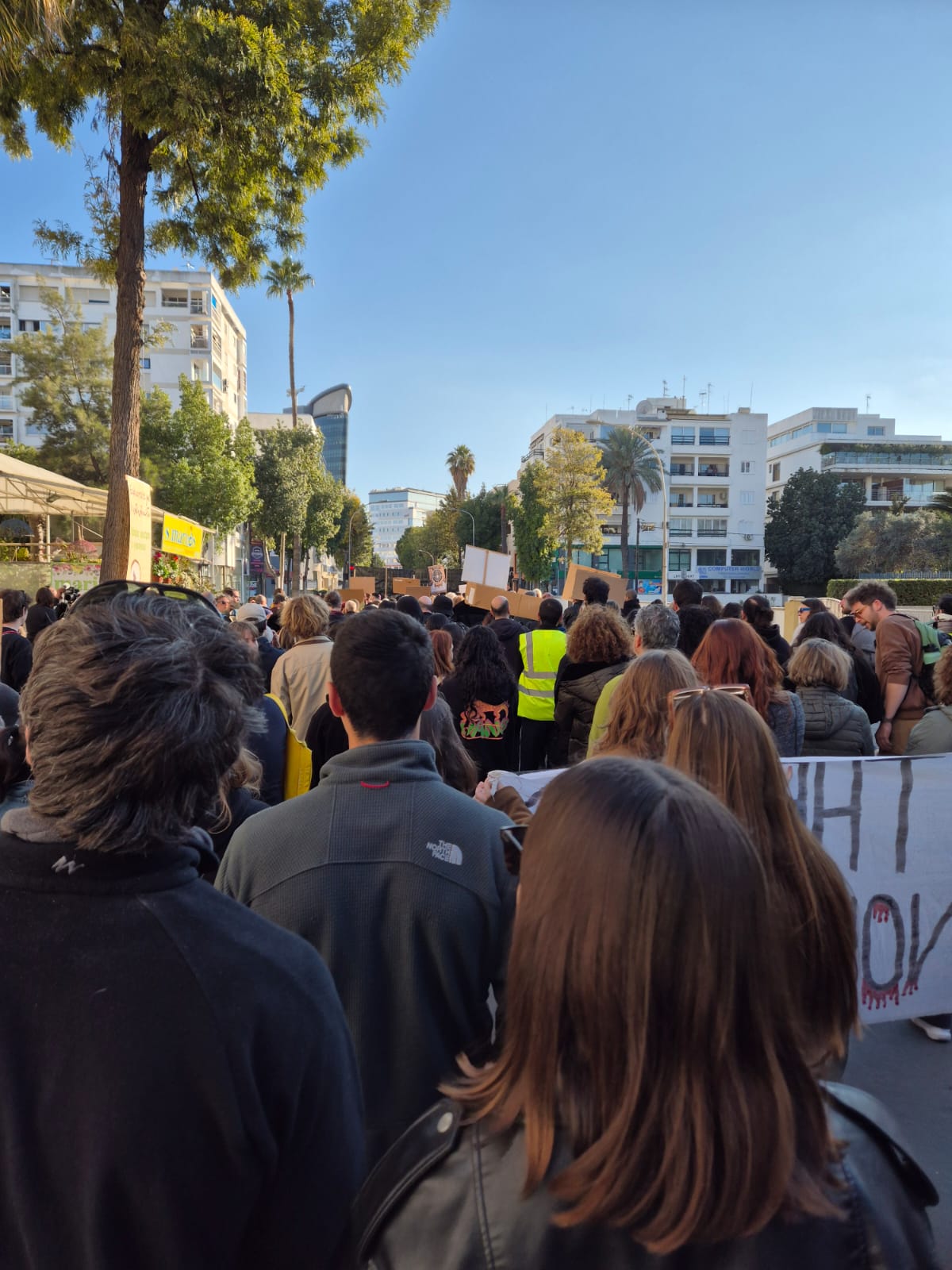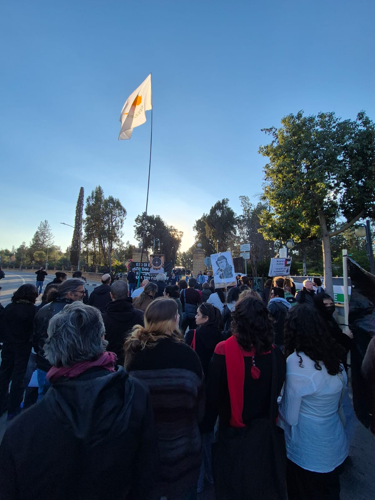 The march started at the Pasydy building in the centre of Nicosia and headed to the presidential palace. Among others it was also supported by BDS Cyprus, Cyprus Palestine Solidarity Action Far Right Watch CY, Genocide Free Cyprus, Queer Collective and United for Palestine.