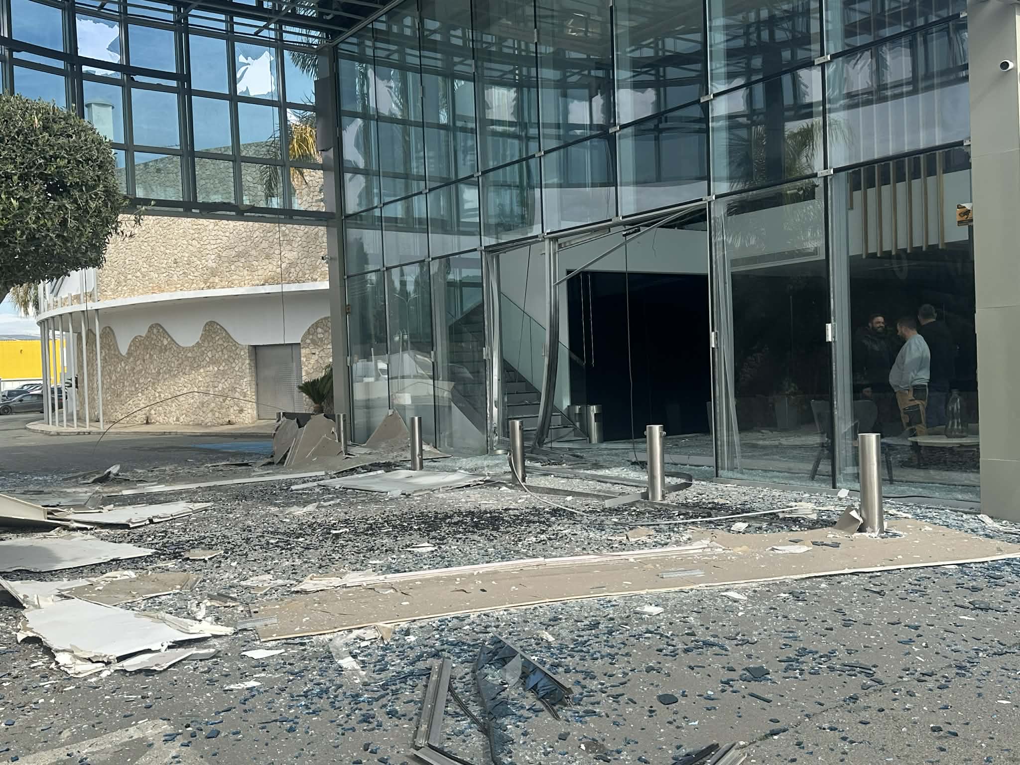 A bomb exploded at the Pavilion banquet centre in Lakatamia, Nicosia, in the early hours of Monday, causing damage to the entrance.
