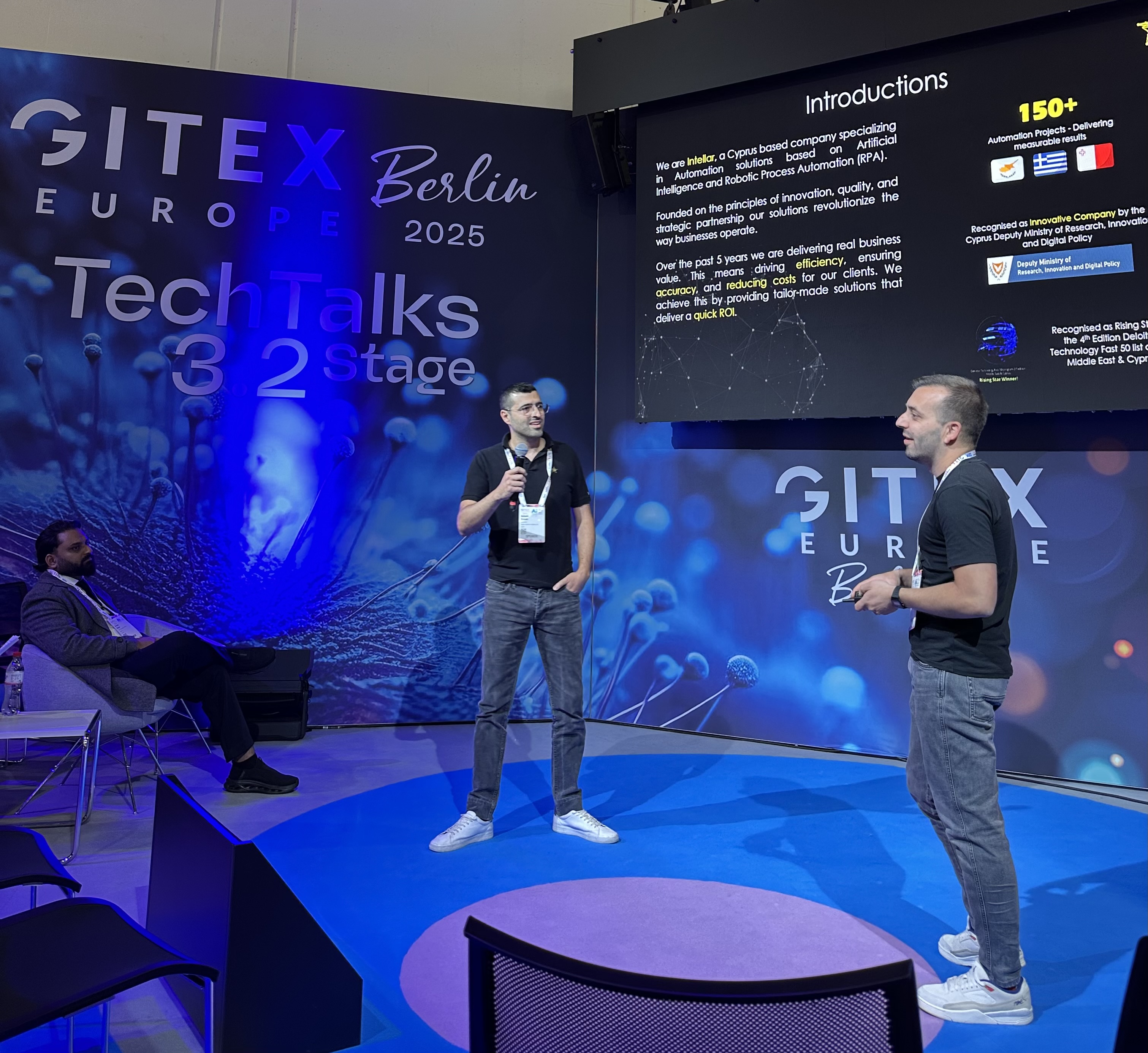Antonis described Intellar as a software technology company focused on solving real operational problems through artificial intelligence and robotic process automation (RPA).
