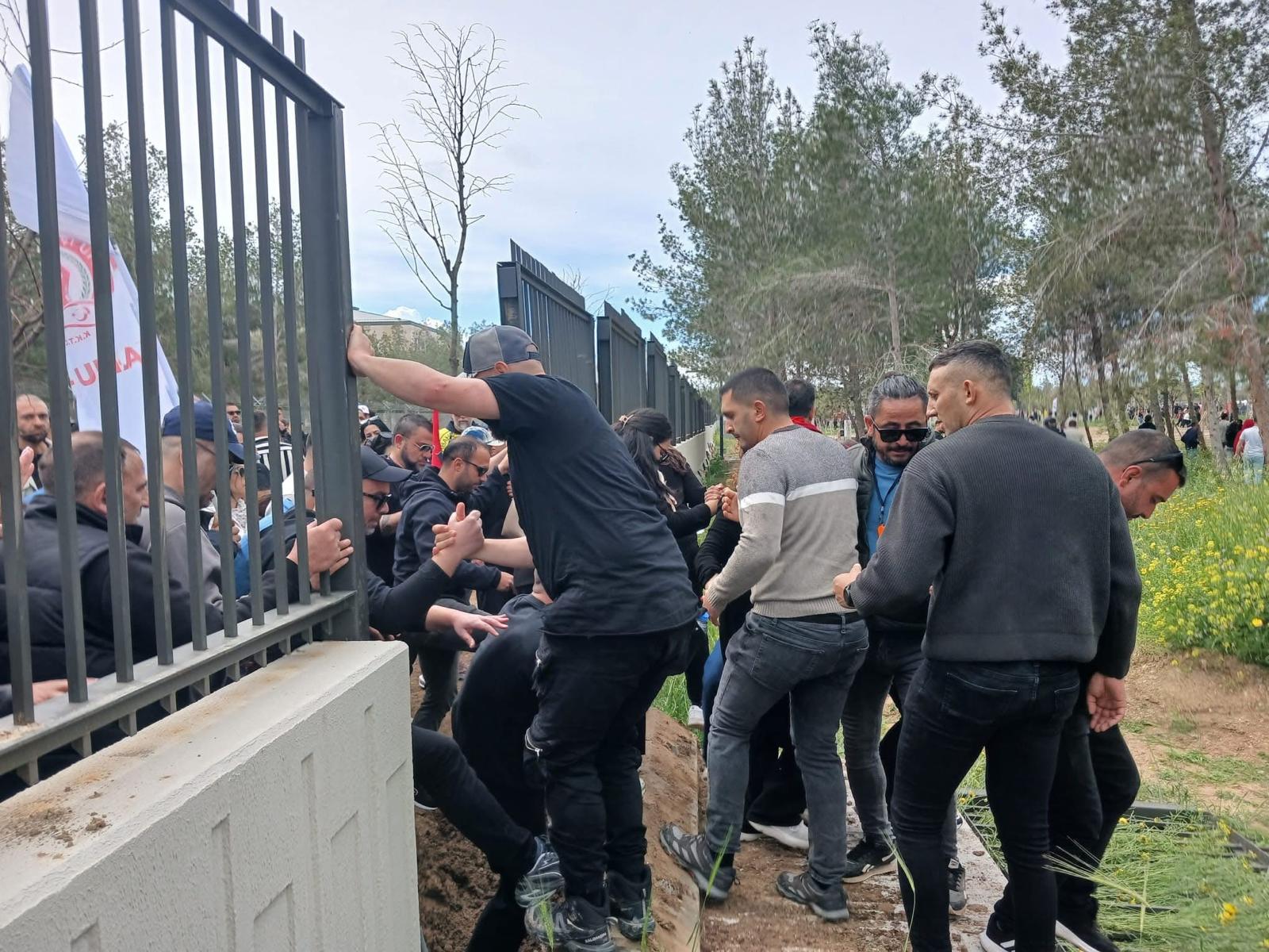 As had happened in the previous two days of protests, demonstrators powered through riot fences erected by the Turkish Cypriot police outside the building’s complex, while also uprooting sections of the complex’s perimeter wall, before once again advancing as far as the building’s front door.