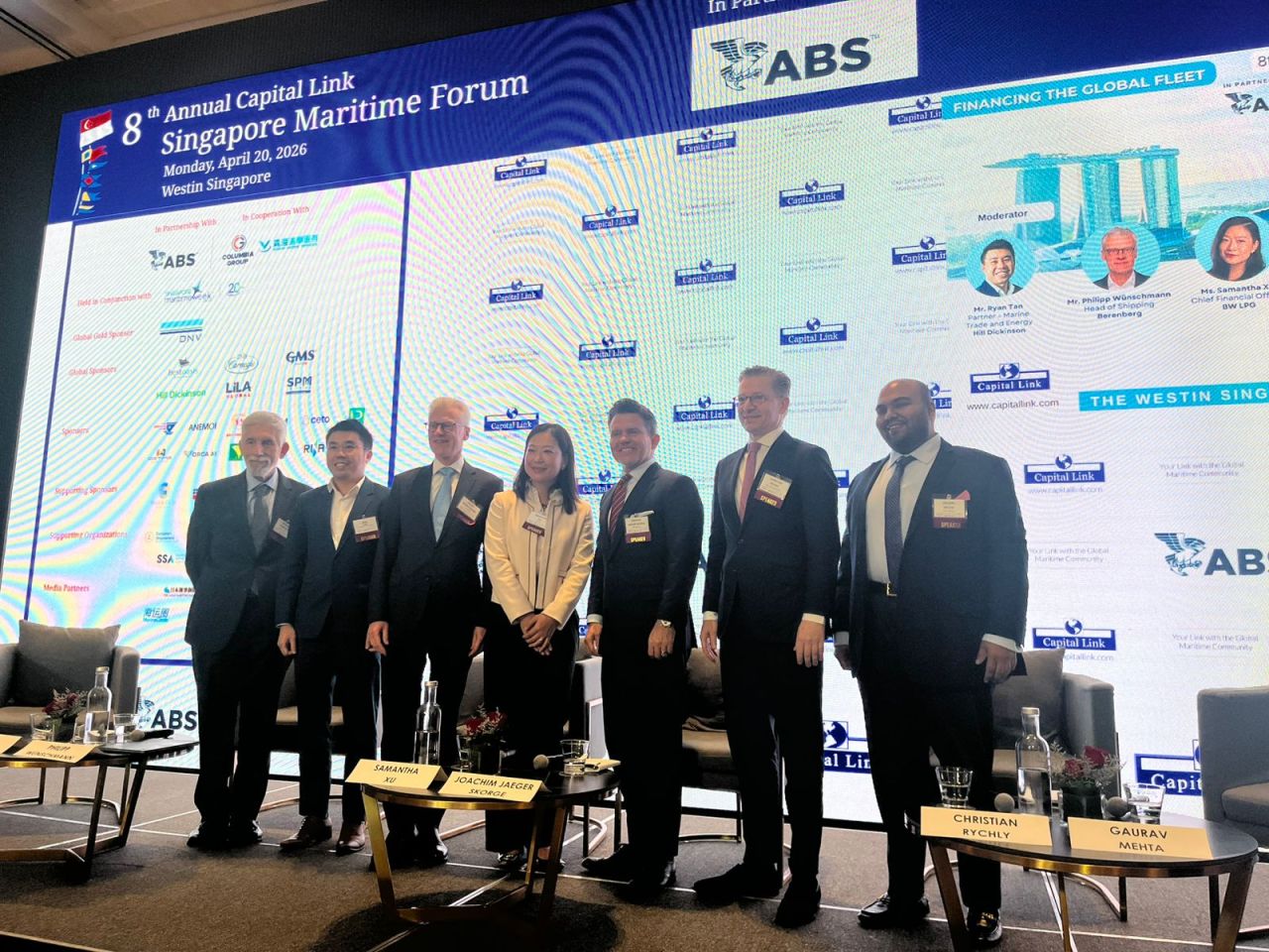 It included Philipp Wünschmann, head of shipping at Berenberg, Samantha Xu, chief financial officer at BW LPG, Joachim Jaeger Skorge, managing director and regional head of Asia-Pacific at DNB Carnegie, Christian Rychly, managing director at MPC Capital and COO of MPC Container Ships, and Gaurav Mehta, managing director of SPM Shipping/Best Oasis.